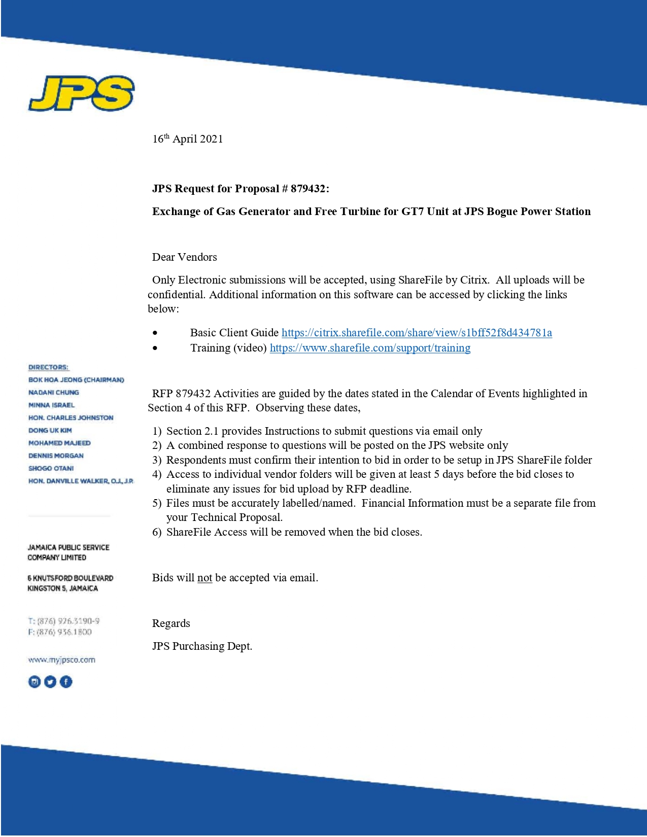 April 19, 2021   Carilec   Comments Off on JPS Request for Proposal # 879432: Exchange of Gas Generator…