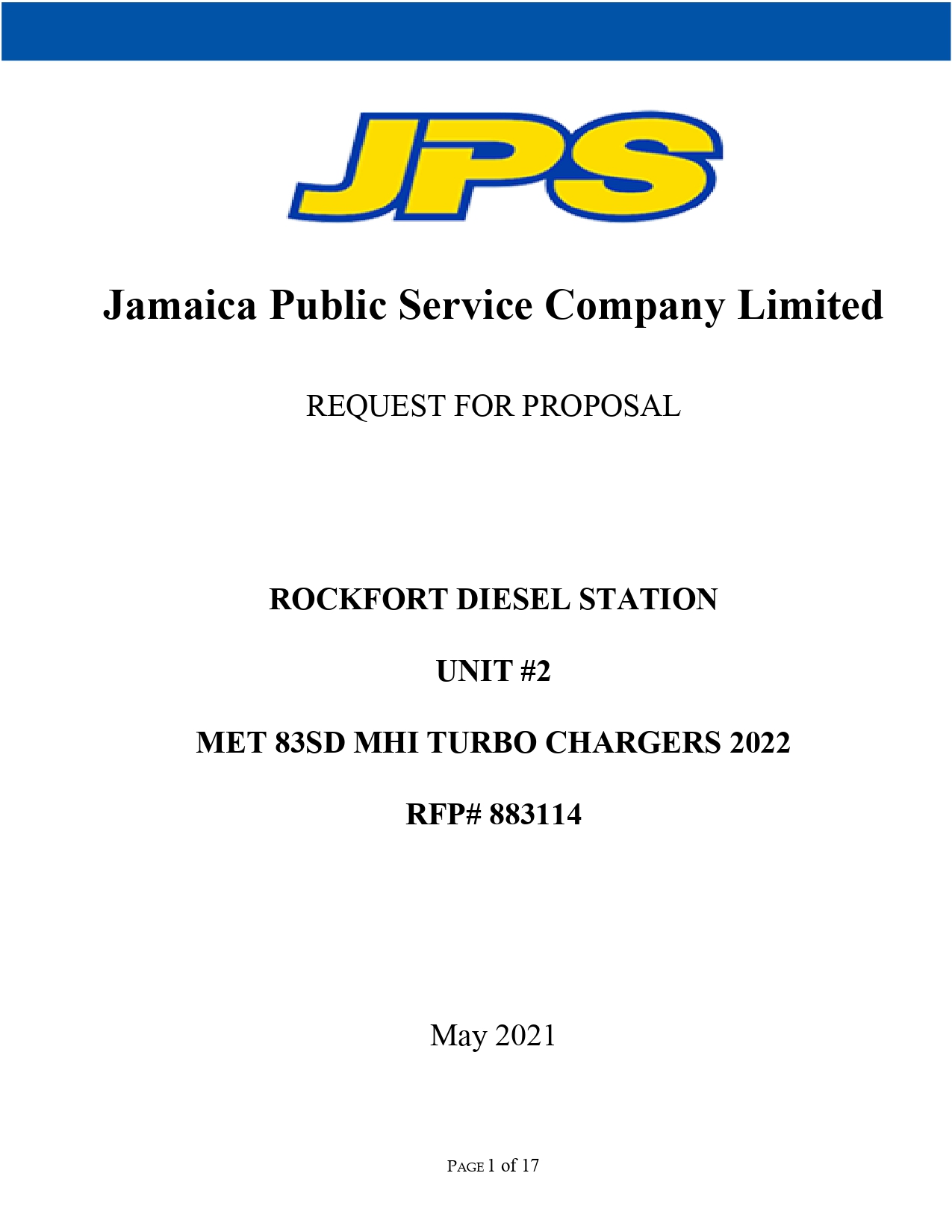 June 10, 2021   Carilec   Comments Off on JPS RFP 883114 – Rockfort Diesel Station Unit 2 Turbo Chargers Major Overhaul 2022