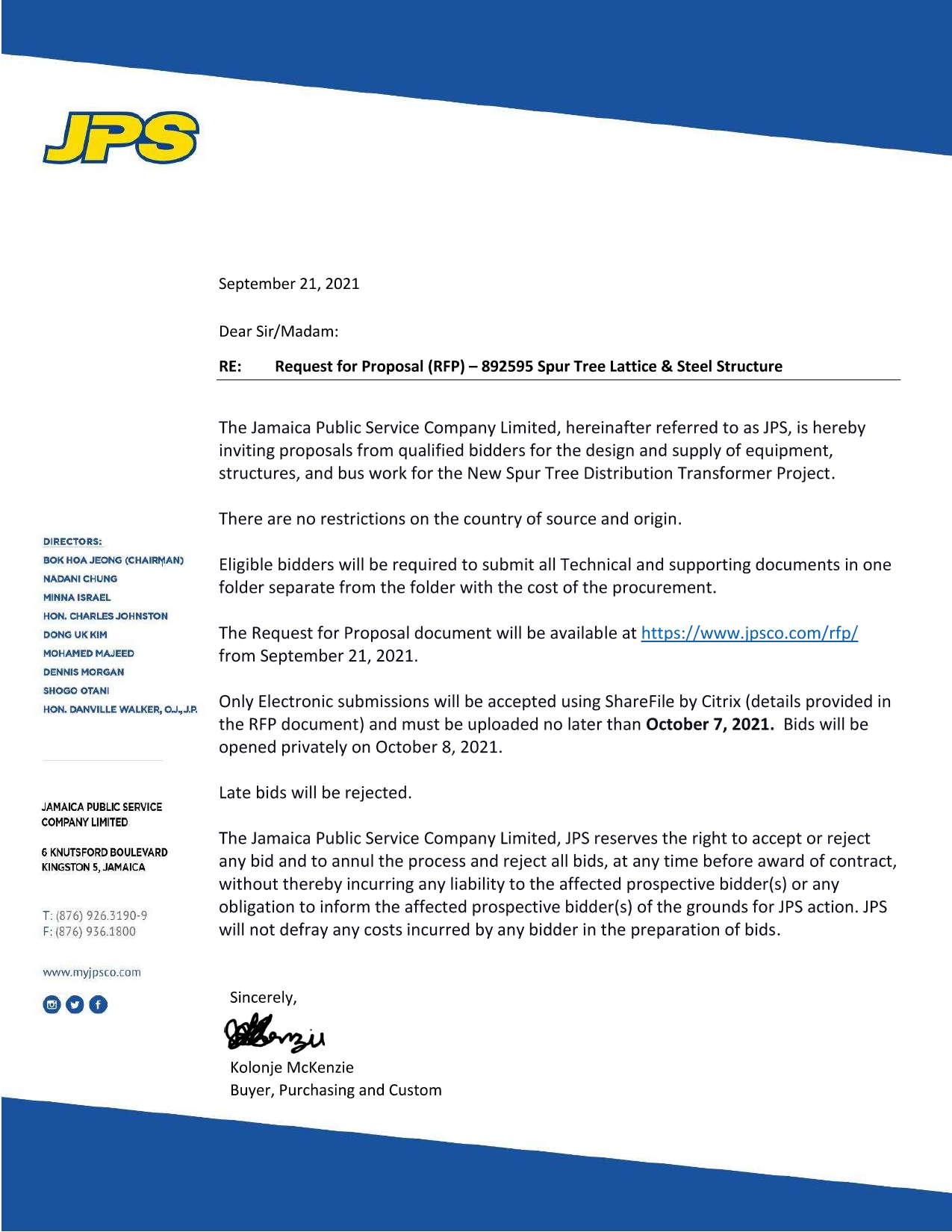 September 22, 2021   Carilec   Comments Off on JPS RFP# 892595 Spur Tree Lattice & Steel Structures