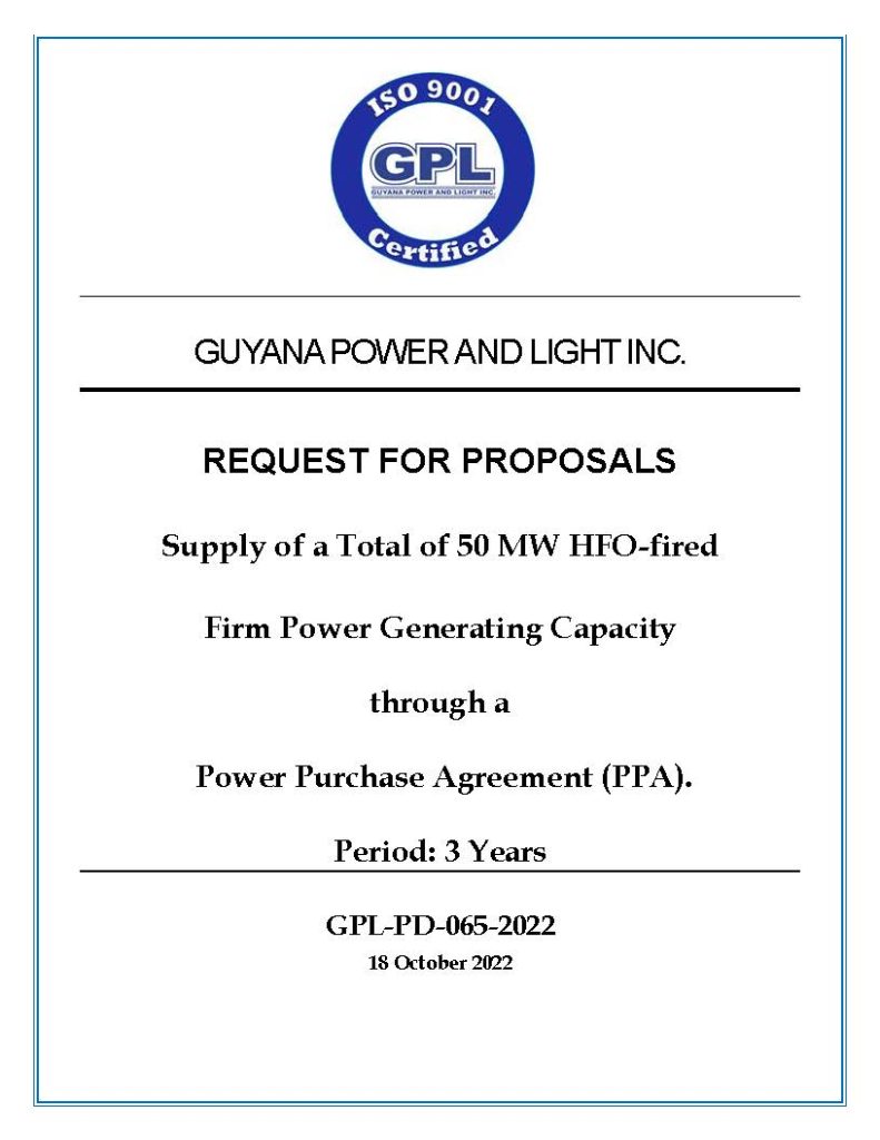 GPL RFP 065-2022 – Supply of Total 50 MW Baseload Generation