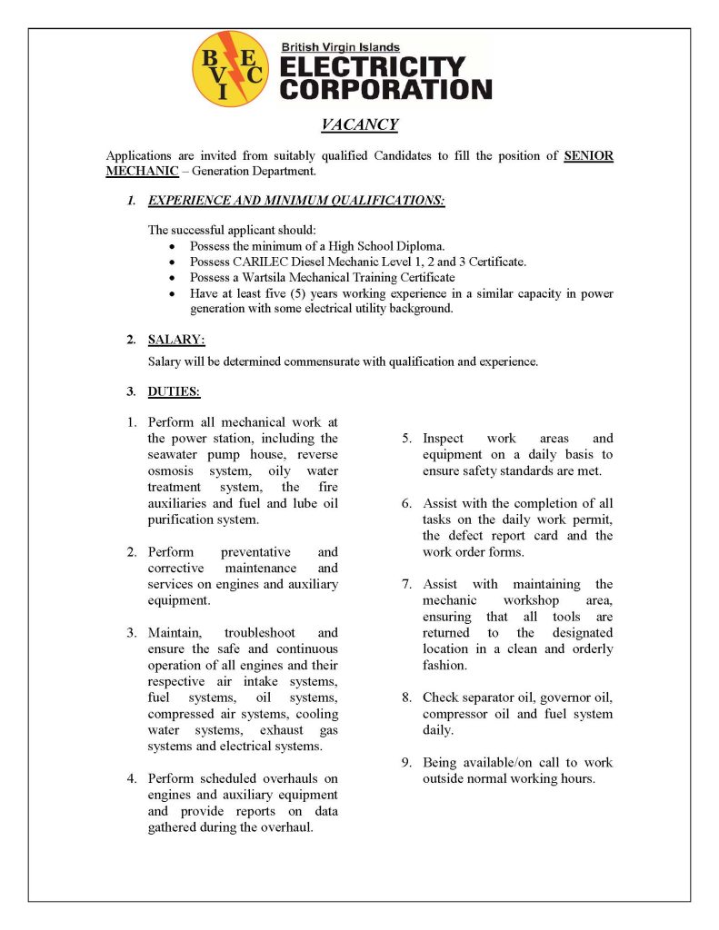October 25, 2022   Carilec   Comments Off on BVIEC – Senior Mechanic