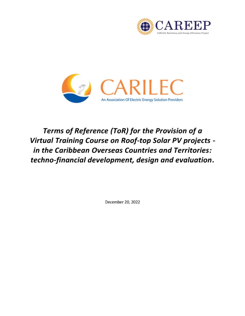 CAREEP RFP – Preparation and Implementation of a Virtual Course on Techno-Financial, Design, Evaluation and Development of Roof-top Solar PV Projects for Caribbean OCTs