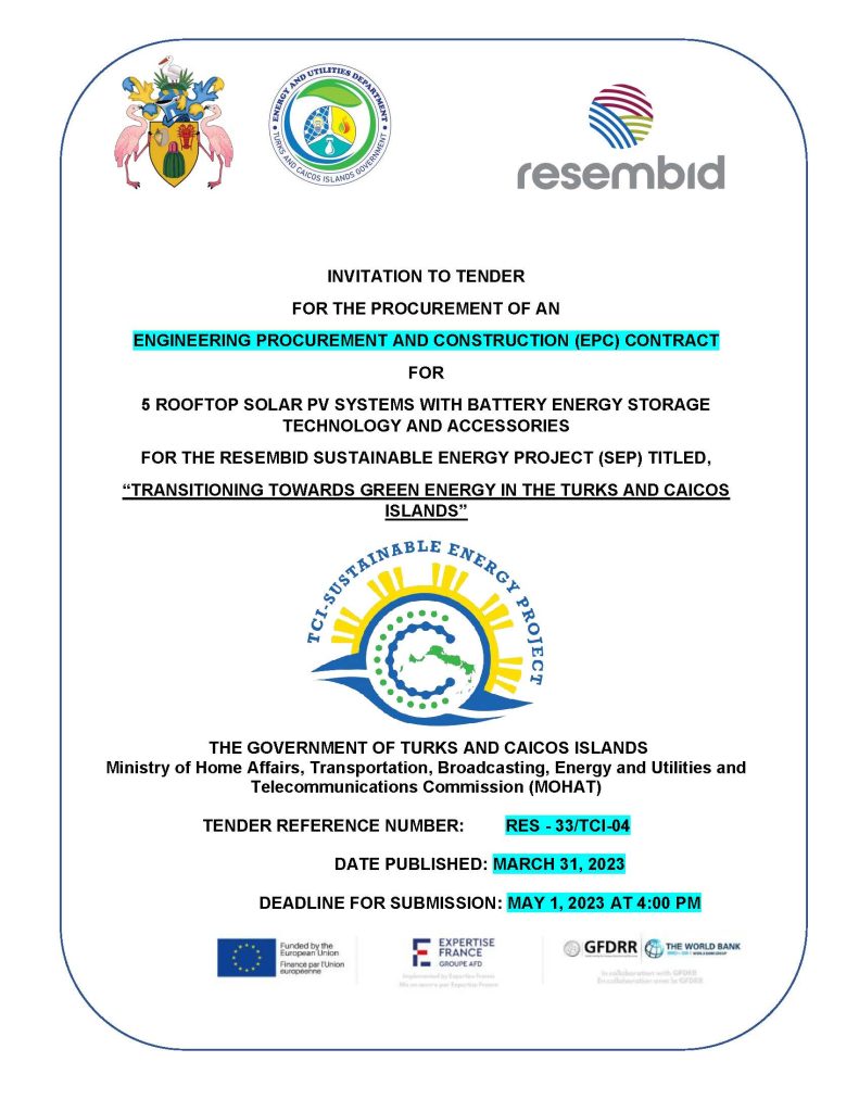 • TCI Government – Invitation to Tender for the Procurement of an EPC Contract for 5 Rooftop Solar PV Systems with Battery Energy Storage