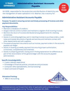 NV GEBE, responsible for the production and distribution of electricity and the management of water operations in St. Maarten, has a vacancy for: