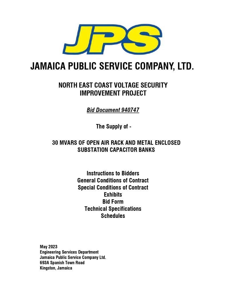 May 19, 2023   Carilec   Comments Off on JPS RFP #940747 – 30 MVARS of Open Air Rack and Metal Enclosed Substation Capacitor Banks