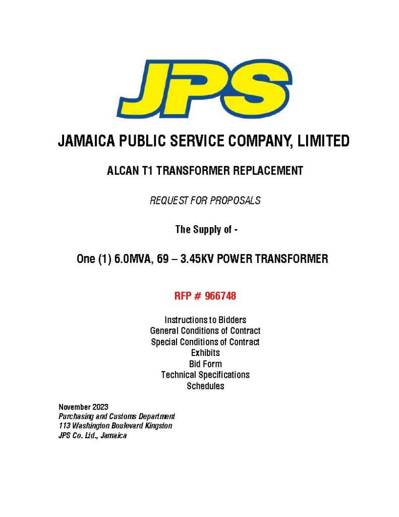 JPS RFP #966748 – 1 6.0MVA, 69-3.45KV Power Transformer