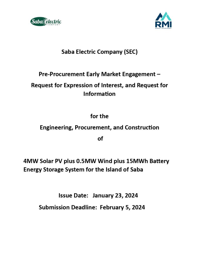 Saba RE Project Phase III Solar + BESS EPC Contractors- Early Market Engagement