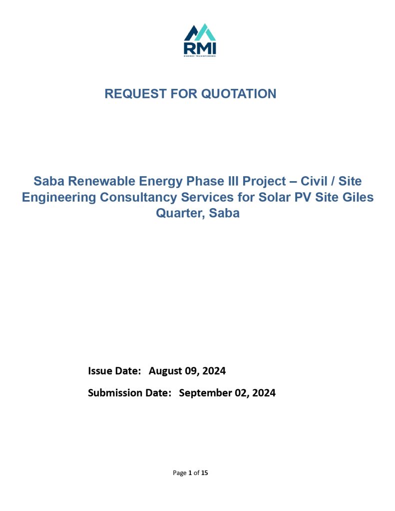 Saba RE Phase 3 Detailed Site Plan Engineering Services RFQ – Final