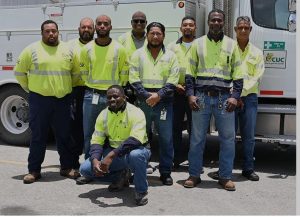 Leading the team is Leighton Barnes, Manager T&D Construction Maintenance, and 41-year CUC veteran and Supervisor Line Services Geraude “Gerry” Holness. The team includes Nathaniel Augustine, Christopher Ebanks, Miguel Goulbourne, Nadir Pott, Deleon Boyden and Chris Kozun. All members are experienced and trained in pole climbing, a vital skill given the challenging terrain and potential scarcity of vehicles and equipment in St. Elizabeth.