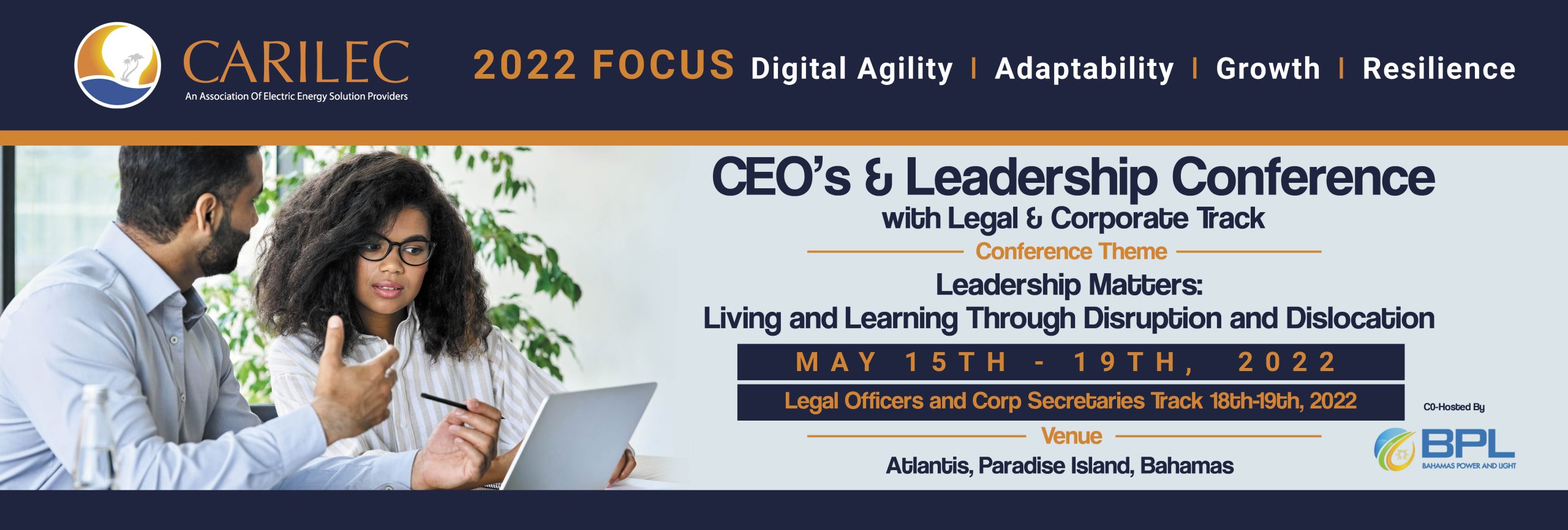 Disruption is defined as ‘disturbance or problems which interrupt an event, activity or process; while dislocation can be described as ‘disturbance from a proper, original or usual place or state’ (Oxford University Press, 2022). Disruption and dislocation often have a cause-and-effect relationship or can occur in tandem. Within the energy sector, several factors may result in disruption and dislocation for organisations. These include government regulations, natural disasters resulting in power outages, transmission and distribution system failures, resistance to renewable energy initiatives and political interference. The CEOs & Leadership conference will feature elite regional and international leaders of electric utility and energy-affiliated organisations who have successfully navigated these and other complex circumstances and are keen on presenting their expertise and knowledge on effective leadership. This conference will be CARILEC’s first face-to-face event since 2019 and so, we aim to provide the utmost value to all our attendees. Join us for first-class leadership experience! For further information contact our Marketing and Member Services Department at events@carilec.org. This conference is targeted towards CEOs of regional energy and energy solution providers, VPs, and SVPs of regional and multinational organisations.