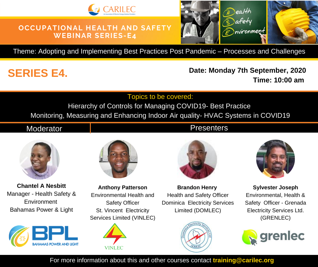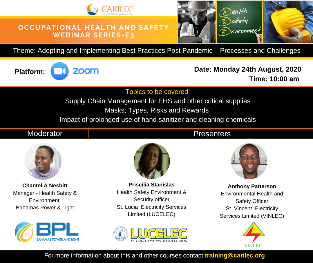 Likewise, organizations have seen their operations layered with more procedures, standards, policies and costs, all in an effort to protect lives and bring some form of assurance, hope and confidence to the workplace. These changes have implications for communication, supply chain, management, leadership, teamwork and of course performance. It is in the spirit of networking that CARILEC OSH Committee has agreed to delve deeper with dialogue, to share best practices and provide support to each other in these series of webinars.