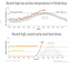 Sea surface temperatures have hit new records, with severe marine heatwaves in the Mediterranean and off the coast of Florida. The US National Oceanic and Atmospheric Administration said that the ongoing heat stress in Florida has not been this high this early in the season since satellite records began in 1985.