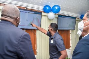 Minister of Agriculture, Zulfikar Mustapha; Minister within the Ministry of Public Works, Deodat Indar and CEO of GPL, Bharat Dindyal, were with the Prime Minister at the OAS and IICA offices for the commissioning.