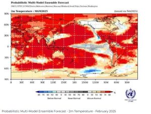Forecasts from the WMO Global Producing Centres for Seasonal Prediction indicate that the current cooler than average sea surface temperatures in the equatorial Pacific are expected to return to normal. There is a 60% probability that conditions will shift back to ENSO-neutral conditions (neither El Niño nor La Niña) during March-May 2025, increasing to 70 % for April-June 2025.