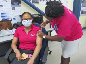 Castries, May 11, 2021 – No one individual or company has been immune to COVID-19. The St. Lucia Electricity Services Limited (LUCELEC) is no exception. The belief that we are all in this fight together fuels our commitment to the vaccination drive – For You. For Yours. For Us.In March, LUCELEC partnered with the Ministry of Health to offer the first shot of the Astra Zeneca COVID-19 vaccine to its staff. Over 50 team members and contractors took advantage of the convenience to get vaccinated at the Cul-de-Sac power station. The move provided added protection for members of our essential service who, by the nature of the of the job would have been challenged to access a local vaccination site.