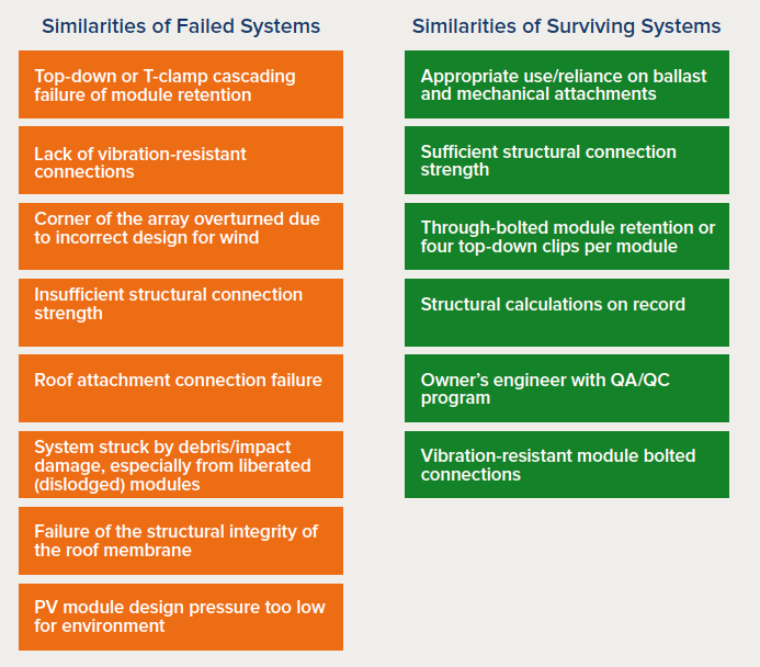 However, these PV systems are useless if they fail. RMI, The Clinton Foundation, and The United Nations Office of the High Representative for the Least Developed Countries, Landlocked Developing Countries and Small Island Developing States recent Solar Under Storm for Policymakers report lays out guidelines for governments, regulators, and developers interested in improving solar PV system survivability to intense wind-loading events.