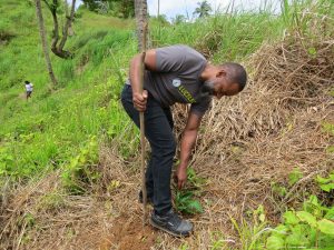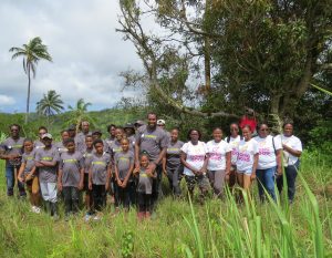 The volunteers journeyed from Castries to the tree planting area in the early morning, accompanied by their children – some of whom had been mere babies the last time the area was visited! The trees planted in the Belle Vue Forest Reserve were domestic trees – citrus, including grapefruit, mandarin and oranges, lemons, lime and cocoa, soursop and love apples.