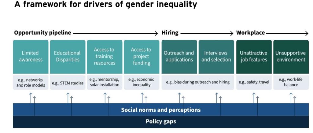 We adapted a framework developed in 2023 by talent advisory firm Shortlist that lays out the core drivers of gender inequality. Focusing on capacity building, our research identified five key drivers of gender inequity: