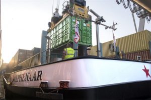 The ‘Alphenaar’ is the first inland waterway vessel to use the zero-emissions service made possible by Wärtsilä’s battery container solution. © Zero Emission Services