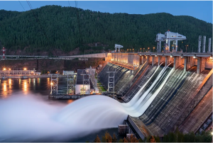 Hydroelectric energy is a type of energy that uses the force of moving water to produce electricity by converting the kinetic energy of moving water into electricity using turbines and generators, which is then used to power residences, commercial buildings, and industrial facilities. Hydropower plants are typically situated near a water source since they rely on water to produce energy. The amount of energy that may be extracted from flowing water is directly proportional to its flow and the elevation change, or “head,” which is the difference in water levels between the hydro input and the hydro discharge point.