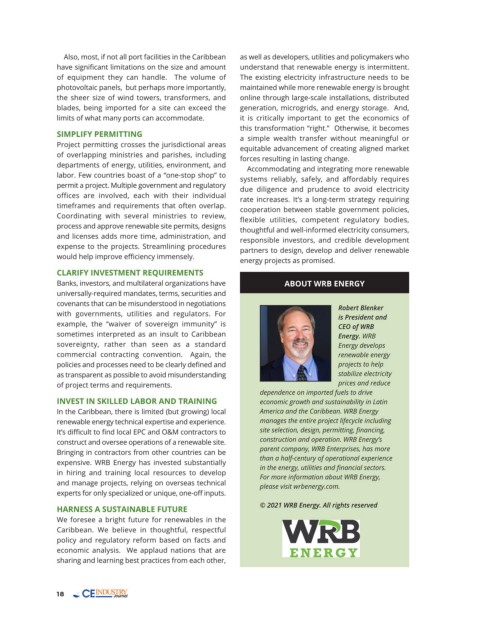 In the Caribbean, there is limited (but growing) local America and the Caribbean. WRB Energy