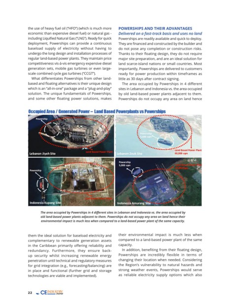 based and floating alternatives is their unique design The area occupied by Powerships in 4 different