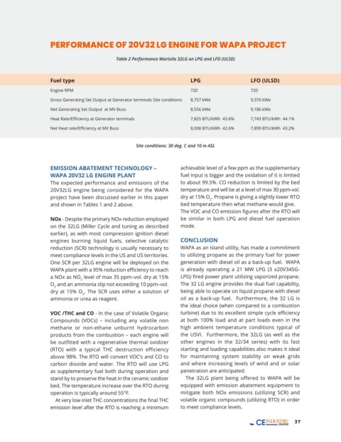 Table 2 Performance Wartsila 32LG on LPG and LFO (ULSD)
