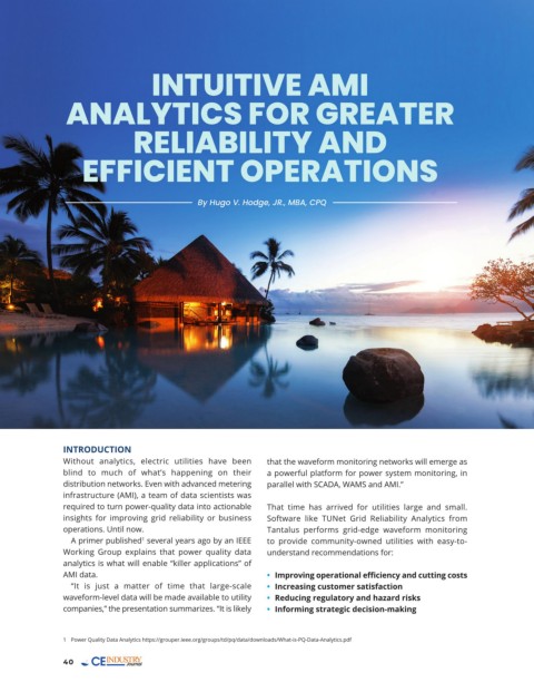required to turn power-quality data into actionable That time has arrived for utilities large and small.