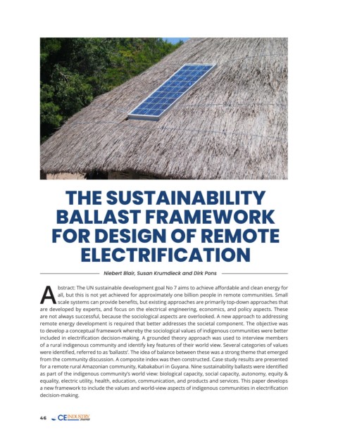 for a remote rural Amazonian community, Kabakaburi in Guyana. Nine sustainability ballasts were identified