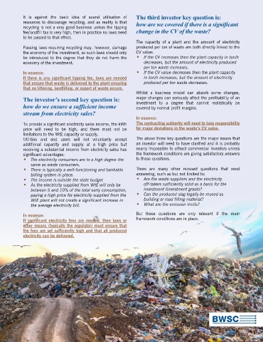 • As the electricity supplied from WtE will only be off-takers sufficiently solid as a basis for the