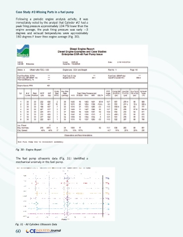 The fuel pump ultrasonic data (Fig. 31) identified a