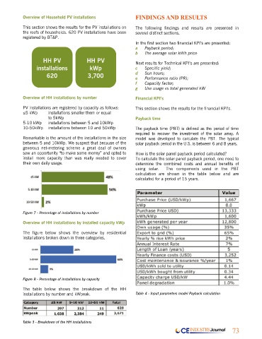 installations by number and kWpeak. Table 4 - Input parameters model Payback calculation
