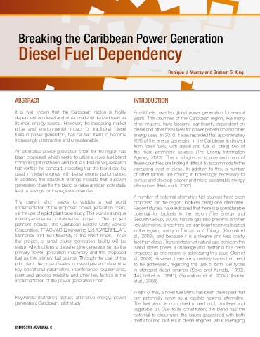generation; Caribbean; pilot study The fuel blend is comprised of methanol, biodiesel and