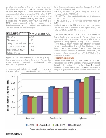 biodiesel and 63% coconut oil by volume (referred to • The BTE for the M10 and M30 blends are all higher than
