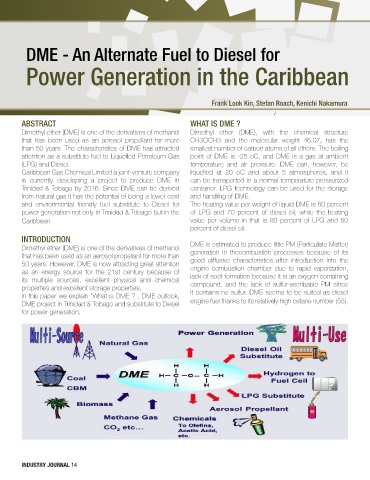 Trinidad & Tobago by 2016. Since DME can be derived container. LPG technology can be used for the storage