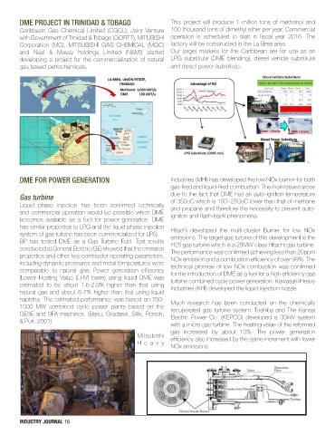 DME FOR POWER GENERATION Industries (MHI) has developed the low NOx burner for both