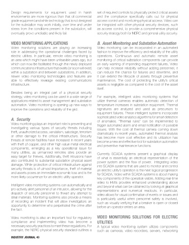 VIDEO MONITORING APPLICATIONS B. Asset Monitoring and Substation Automation