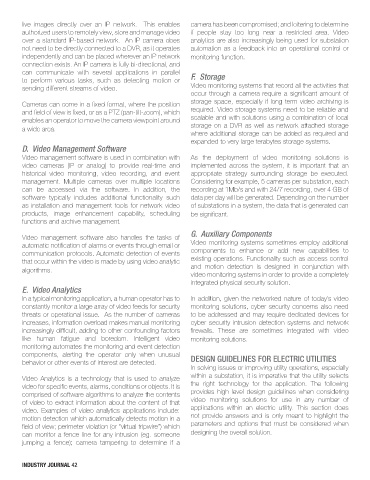 video. Examples of video analytics applications include: applications within an electric utility. This section does