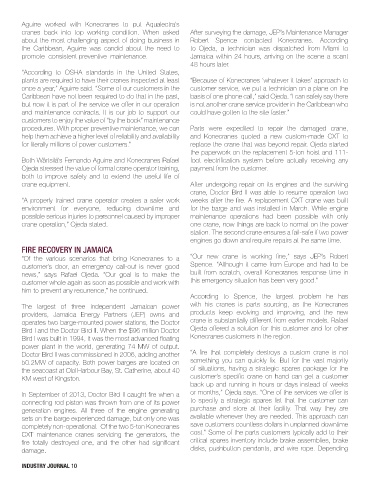 cranes back into top working condition. When asked After surveying the damage, JEP’s Maintenance Manager
