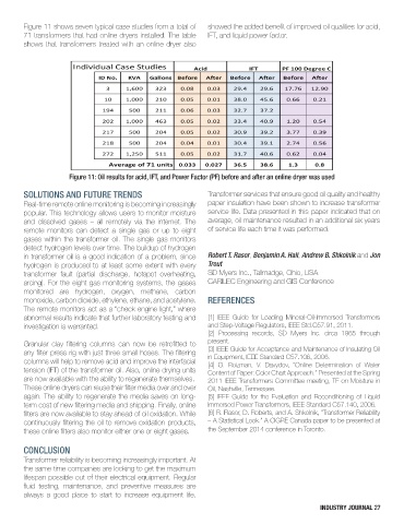 71 transformers that had online dryers installed. The table IFT, and liquid power factor.