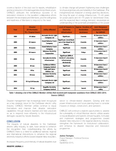 table 1 showing a list of the CARILEC member utilities that received joint manpower assistance from CARILEC 2003-2014.
